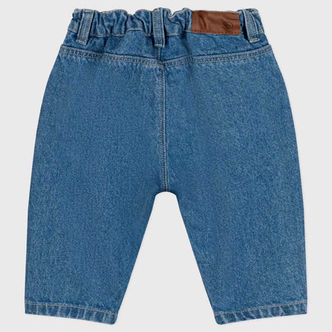 Jeans from the Petit Bateau Children's Clothing Line; adjustable waist with internal buttons. Carefully designed details: zip fly, button closure, and branded inner pockets. Elasticized waist for baby’s comfort.