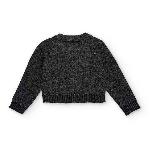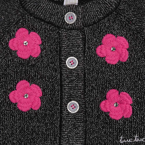 Short cardigan from the Girls' Clothing Line tuc Tuc, with embroidered flowers on the front and made with lurex yarn.