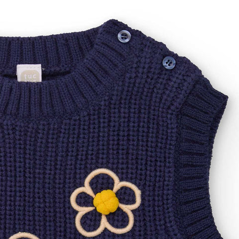 Knitted vest from the Tuc Tuc Girls' Clothing Line, with multicolored flowers applied on the front.