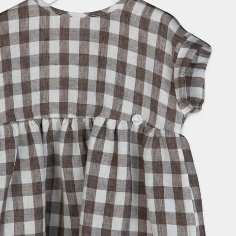 Linen dress from the Lalalù Girl's Clothing Line, with checkered pattern and wide cut.