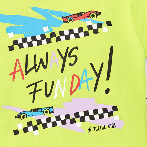 Two-piece sporty set from the Tuc Tuc Children's Clothing Line, featuring a colorful print on the t-shirt.