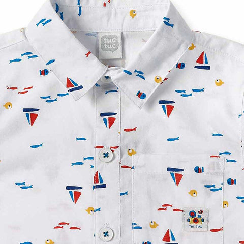 Short-sleeve shirt from the Tuc Tuc Children's Clothing Line, with an all-over multicolor pattern.