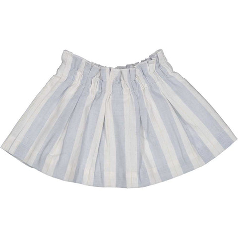 Skirt from the Birba girls' clothing line, striped in soft colors with lurex inserts. Elastic waist with applied bow.
