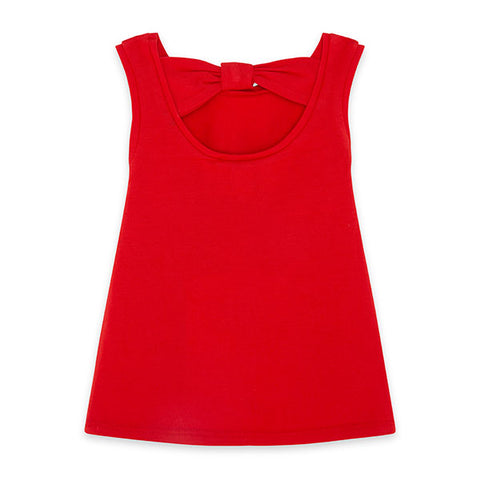 Top of the Tuc Tuc Girl's Clothing Line, Red Submarine collection. with neckline detail on the back with fabric knot, on the front multicolor print.