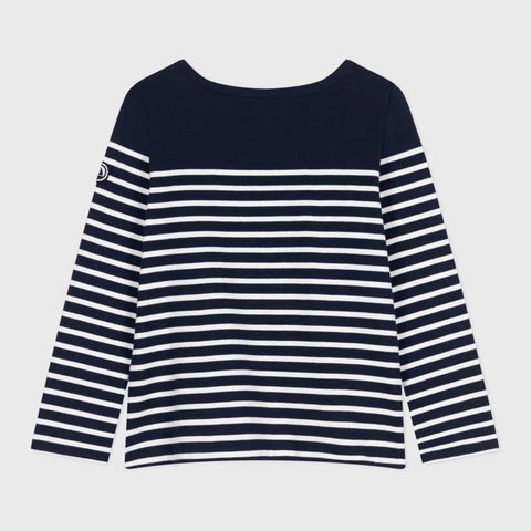 Sweater from the Women's Clothing Line Petit Bateau in thick striped cotton, a comfortable fabric with a good fit. The authentic and timeless marinière in thick cotton, in a straight cut with slits at the bottom sides. Boat neckline. Petit Bateau emblem on the left arm.