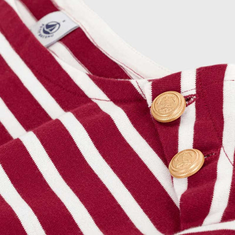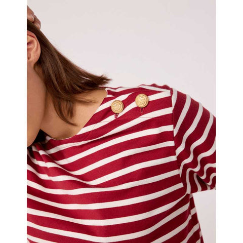 Marinière from the Women's Clothing Line Petit Bateau in jersey, a soft and comfortable material with good durability. The authentic and timeless marinière in thick cotton, in a new revisited straight cut: square line, slightly wider and shorter. Slightly wide round neckline, button placket with golden bell buttons on the left shoulder.