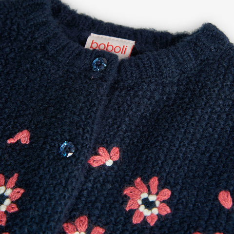Short cardigan from the Boboli Children's Clothing Line, with embroidered flowers on the front, in contrasting color.