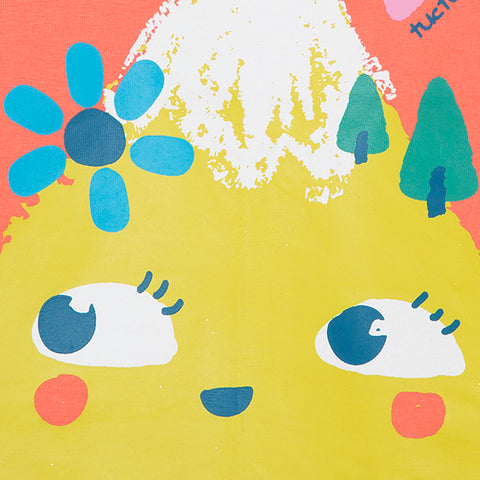 Ensemble deux pièces de la ligne vêtements Fille tuc tuc, collection Hikers, composé d'un t-shirt avec impression multicolore sur le devant et d'un legging à motif floral.