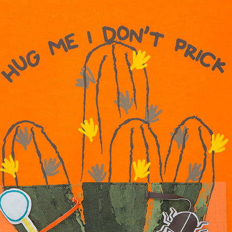 T-shirt de la Ligne Vêtements Enfant tuc Tuc, collection Fancactus. En couleurs vives et avec de sympathiques applications sur le devant ; petits boutons sur l'épaule.