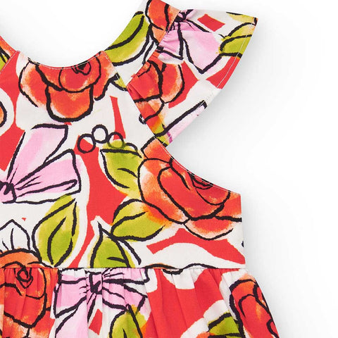 Robe Ligne Vêtements Fille Tuc Tuc, avec taille cintrée et large décolleté dans le dos. Motif floral intégral.