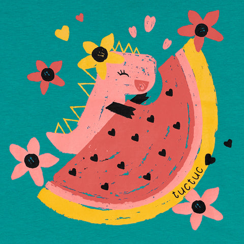T-shirt de la Ligne Vêtements Fille Tuc Tuc, avec impression colorée sur le devant et bouton-pression sur l'épaule.