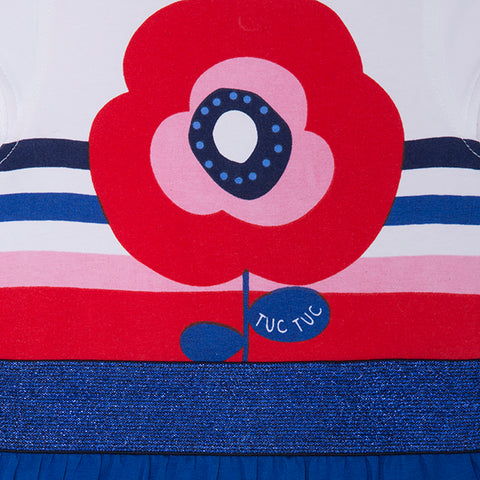 Robe de la ligne vêtements fille Tuc Tuc, avec élastique pailleté à la taille, jupe ample et imprimé coloré sur le devant.