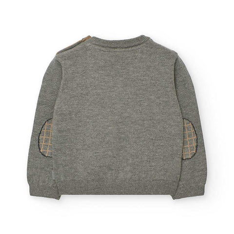 Pull de la ligne Vêtements Enfant Boboli, avec motif à carreaux sur le devant et lapin représenté en bas.