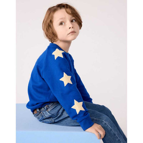 Tshirt della Linea Abbigliamento Bambino Petit Bateau in tessuto felpato morbido e comodo. Scollo arrotondato. Bordo a costine sullo scollo, a fondo manica e in basso. Maniche raglan. Decorato con stemmi bouclé a forma di stelle sulle maniche.