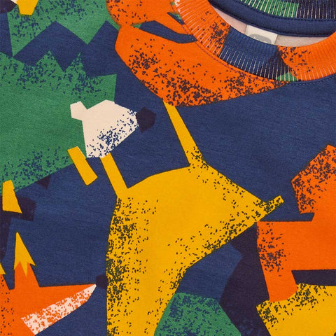 Ensemble survêtement de la ligne Vêtements Enfant Tuc Tuc, avec sweat-shirt col rond à motif multicolore, et pantalon avec bord-côte au bas.