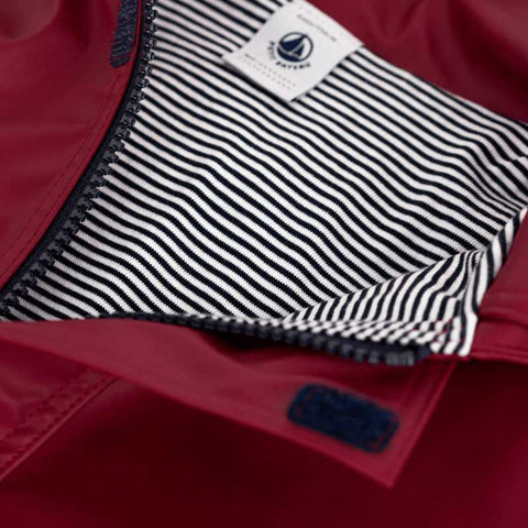 Ciré de la ligne Vêtements Fille Petit Bateau, idéal pour le temps pluvieux ! Nous aimons les détails pratiques et soignés : l'intérieur en jersey de coton milleraies, doux et confortable, les bords en côtes aux extrémités des manches et la fermeture éclair sous la patte avec des fermetures auto-agrippantes pour empêcher l'air froid de passer. Doublure en coton avec le motif milleraies iconique de la marque.