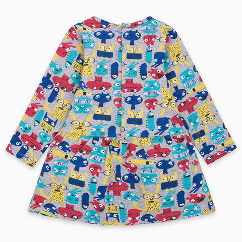 Vestitino de la Ligne Vêtements Fille Tuc Tuc en molleton avec petits boutons au dos et motif multicolore overall.