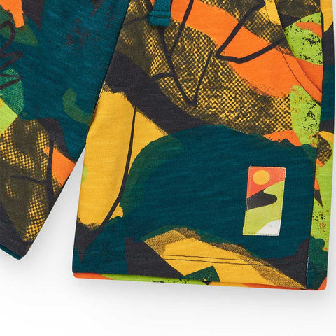 Bermuda de la ligne Vêtements Enfant Nath Kids, avec un motif camouflage aux couleurs fluo.