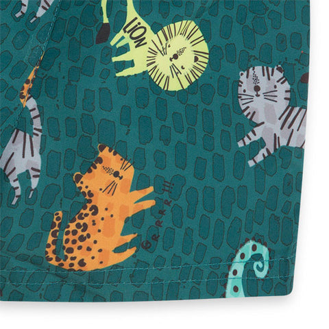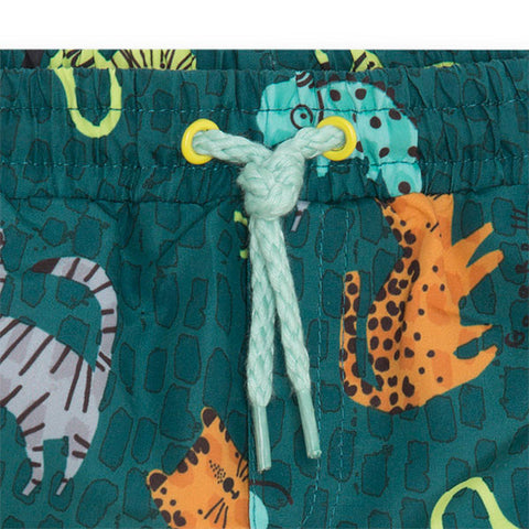 Boxer Mer de la Ligne Vêtements Enfant Tuc Tuc, collection In the Jungle, avec cordon à la taille et motif intégral avec caméléons aux couleurs fluo.