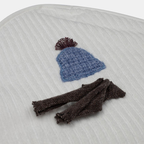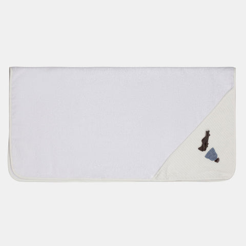 Accappatoio bébé de la Ligne Lalalù, avec petit triangle à capuche et petite application en maille.