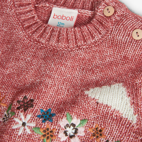 Pull de la ligne Vêtements Fille Boboli, très doux avec des petites fleurs brodées sur le devant.