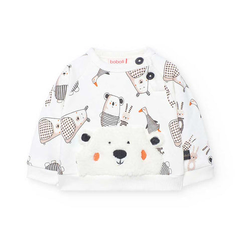 Ensemble deux pièces de la ligne Vêtements Enfant Boboli, avec pantalon doux uni et sweat à motif avec petits ours.
