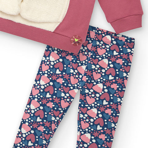 Completo deux pièces de la Ligne Vêtements Fille Tuc Tuc, composé d'un sweat-shirt avec application en peluche sur le devant et d'un legging à fleurs.
