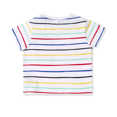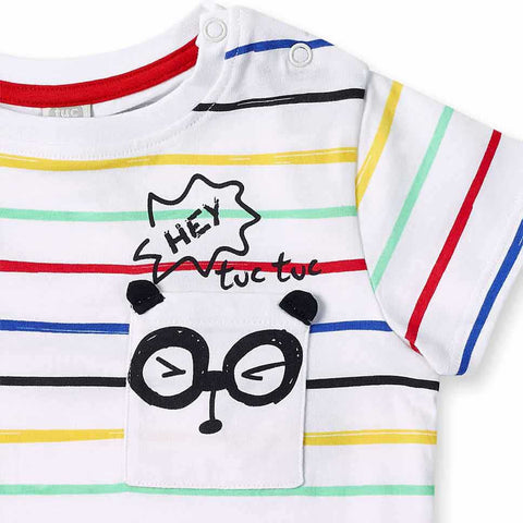T-shirt de la ligne Vêtements enfant Tuc Tuc, avec motif à rayures multicolores et petite poche à l'avant.