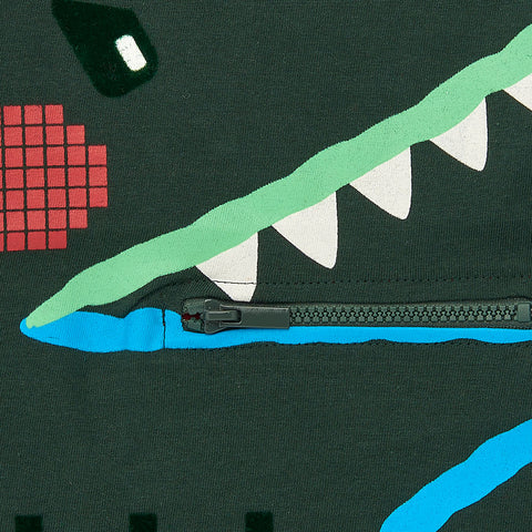 Maglietta de la Ligne Vêtements Enfant Tuc Tuc, avec impression colorée sur le devant et fermeture éclair pour fermer la petite poche.