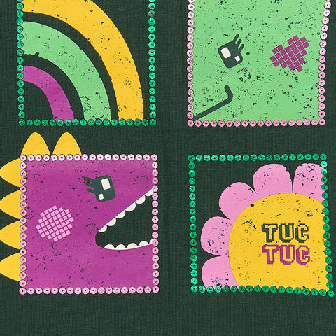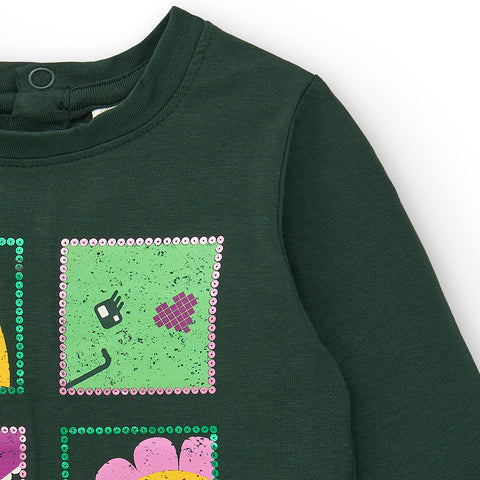 T-shirt à manches longues de la Ligne Vêtements Fille Tuc Tuc, avec application de petites paillettes multicolores sur le devant.