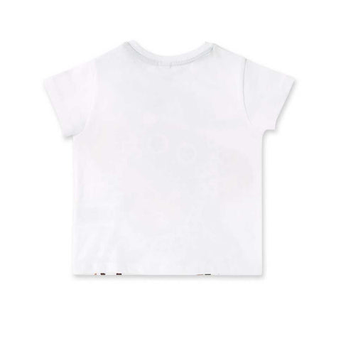 T-shirt à manches courtes de la Ligne Vêtements Enfant Tuc Tuc, avec boutons-pression sur l'épaule et impression colorée sur le devant.