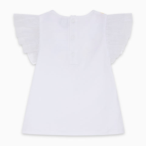 T-shirt de la Ligne Vêtements Fille Tuc Tuc avec manches en tulle et dessins colorés sur le devant à motifs floraux.