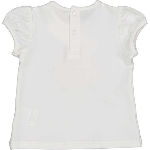 T-shirt de la Ligne Vêtements Fille Birca, avec application de pétales en tissu sur le devant. Petits boutons dans le dos.