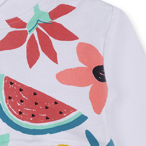 Giacca en molleton de la Ligne Vêtements Fille Tuc Tuc avec fermeture éclair, motif de fruits colorés.