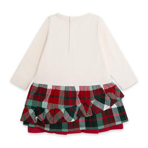 Abitino della linea abbigliamento Tuc Tuc, collezione Highlands, con parte superiore in jersey e gonnellina in flanella a quadri.