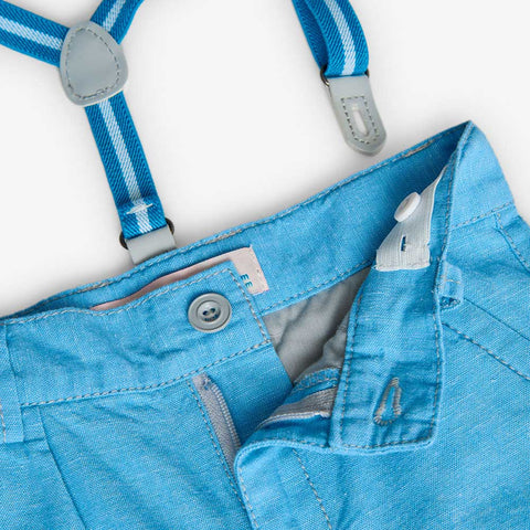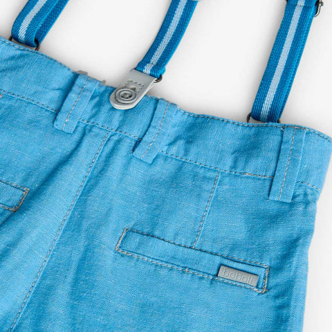 Composizione: Pantalone: 80% Cotone 20%lino Bretelle: 87% Poliestere 13%elastano Istruzioni di lavaggio: Istruzioni di lavaggio: Lavare in lavatrice, temperatura massima 30º C. Non candeggiare. Non adatto all'asciugatura in asciugatrice. Stirare a bassa temperatura, massimo 110º C. Non lavare a secco.