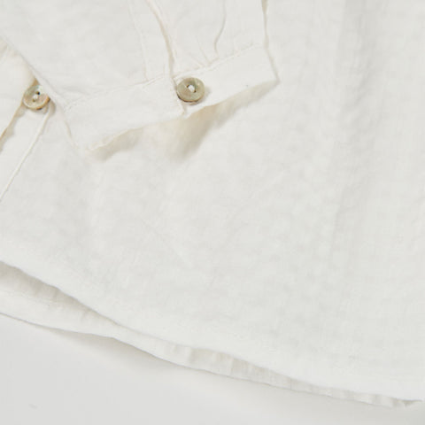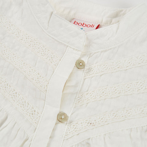 Camicia della Linea Abbigliamento Bambina Boboli, con modello largo e colletto alla coreana. Sul davanti parte superiore ricamata cn applicazione di piccoli pizzi.