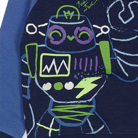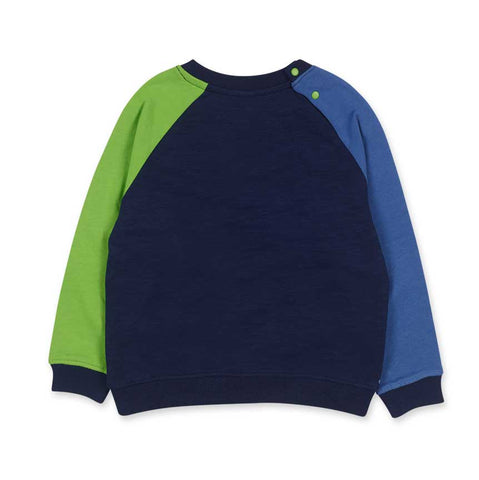 Felpa della Linea Abbigliamento Bambino Tuc Tuc, maniche a forchetta e bottoncini a pressione sul dietro. Sul davanti stampe in colori fluo.