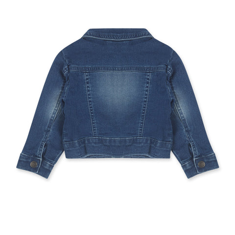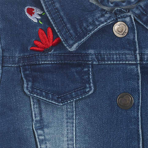 Giubbotto jeans della Linea Abbigliamento bambina tuc Tuc, con ricami sulle spalline e bottoncini a pressione.