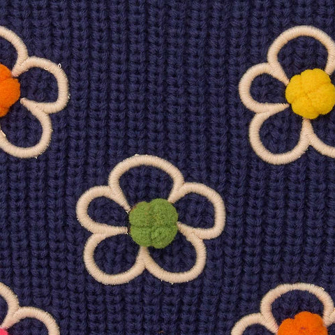 Gilet in maglia della Linea Abbigliamento Bambina Tuc Tuc, con fiori multicolor applicati sul davanti.