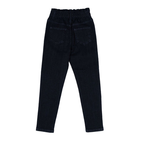Pantalone Jeans della Linea Abbigliamento Bambina Fracomina, a vita alta con elastico, modello largo.