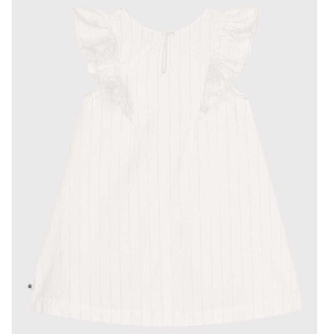 Abito della Linea Abbigliamento Bambina Petit Bateu in seersucker, un tessuto morbido e piacevole da indossare, dall'aspetto leggermente goffrato.