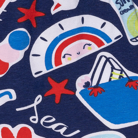 Completo mare della Linea Abbigliamento Bambina Tuc Tuc, con top a fantasia e pantaloncino a tinta unita con riccetti sul fondo.