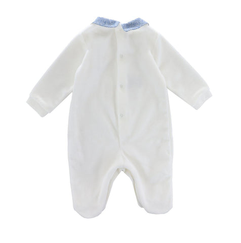 Tutina della Linea Abbigliamento Bambino Lalalù con colletto a camicia e simpatico in maglia sul davanti.