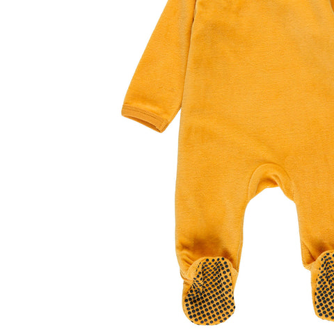 Tutina della Linea Abbigliamento Bambino Boboli, in ciniglia, con appliczioni e ricami sul davanti. Abbottonatura laterale.